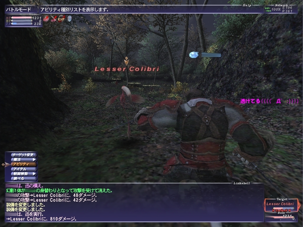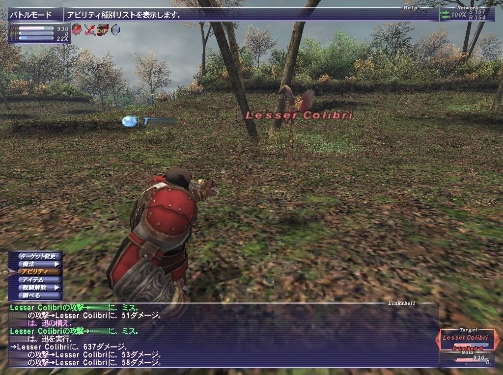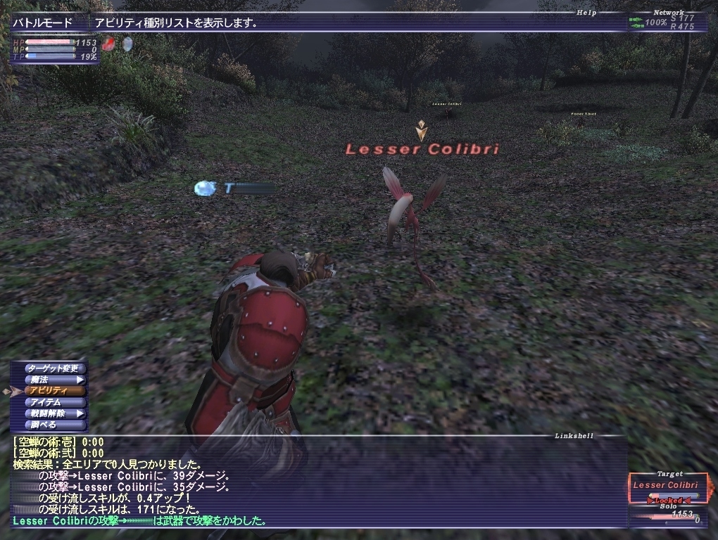専心の効果が切れ、ちまちまとコリブリを狩っているところに